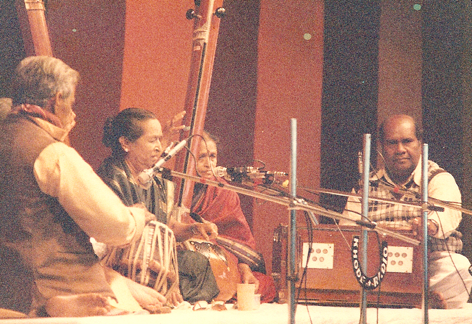 As Gangubai got older, her voice deepened even further. A vocal style that normally depends on delicacy of tone and subtle inflection was transformed; her brush became very broad, her enormous voice carrying a huge emotional load with a minimum of decoration. Her daughter Krishna sang on stage with her, and the voices of the two women blended in a cross-generational communion that created a sense of deep timelessness. Krishna Hangal never married, remaining her mother’s constant companion until her death of cancer in 2004.